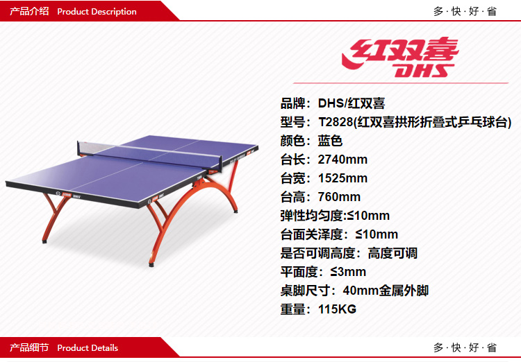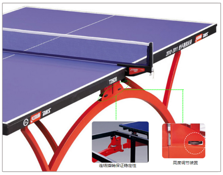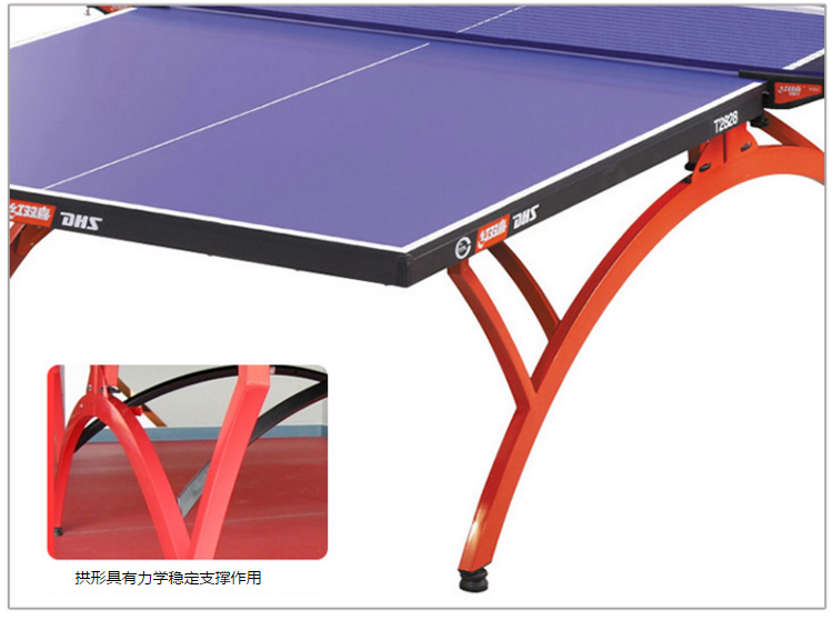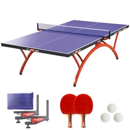 拱形结构,稳定性好,配有红双喜网架、乒乓球拍、乒乓球