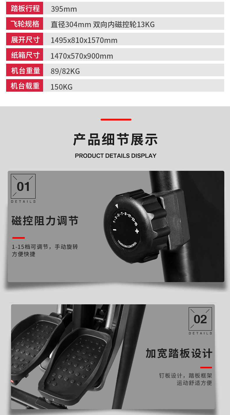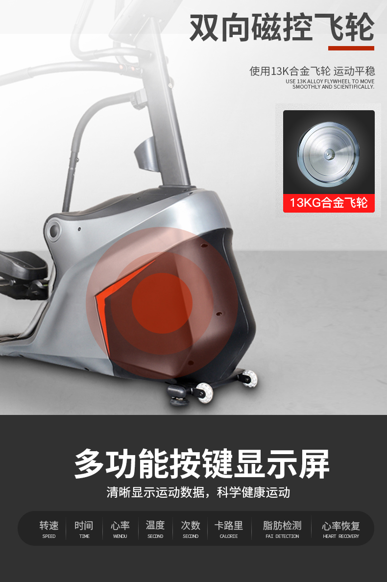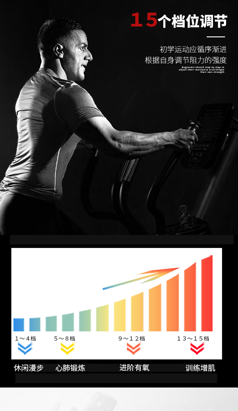 1-15档阻力调节,13kg双向磁控合金飞轮,运动更平稳