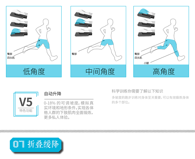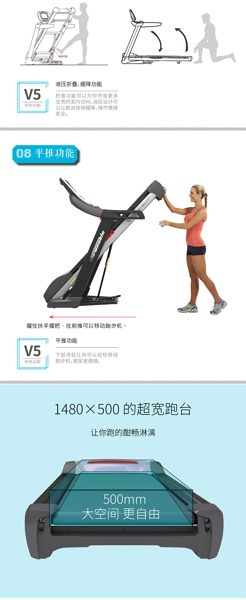 8寸LCD显示屏,坡度0-18%,跑步面积1480×500mm,厚稳钢焊机体,低平台双重减震,折叠不占地方,移动方便