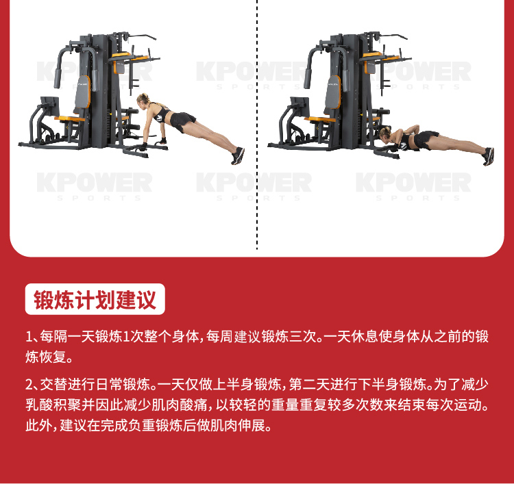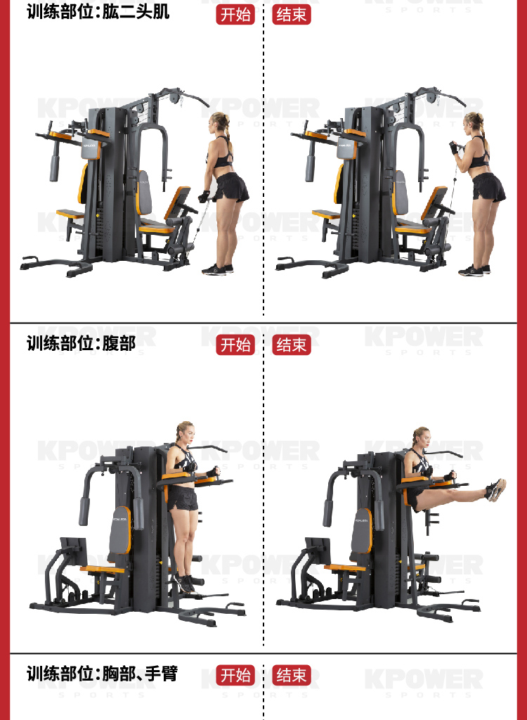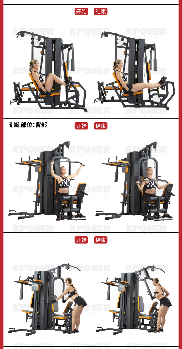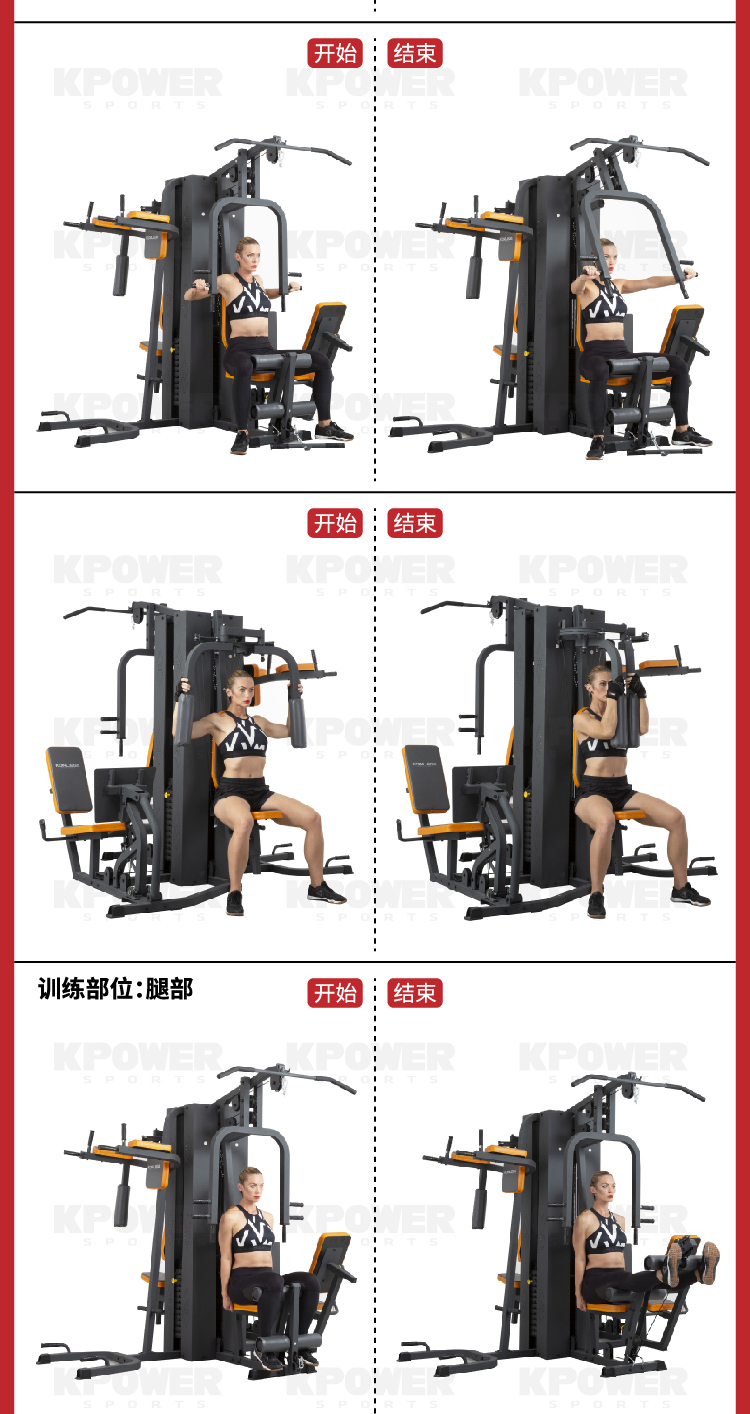 腿部侧向伸展等,可综合训练腹,臂,背,胸,腿,臀部等肌肉。