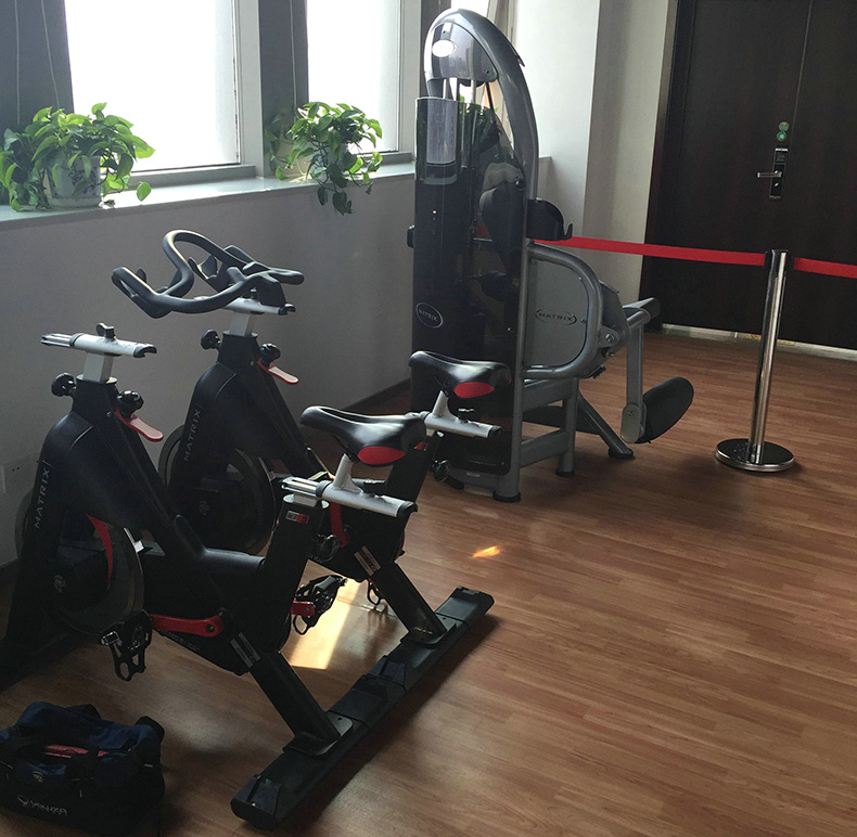 郑州金刚体育用品有限公司承接中国葛洲坝集团总部办公楼健身房工程,配备专业的健身康体器材,有JOHNSON乔山MATRIX跑步机、(自发电)立式健身车、(自发电)靠背式健身车、(自发电)椭圆机、(自发电)台阶器、动感单车、胸部推举机、滑轮下拉机、大腿伸展机、肩部推举机、坐式划船机、史密斯机训练器、可调式腹肌板、可调式哑铃椅、哑铃架、专业哑铃、红双喜金彩虹乒乓球桌、乒乓球网架、星牌台球桌、健身房音响系统等众多丰富的健身康体器械,满足职工的健身锻炼需求。