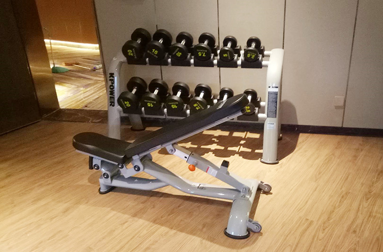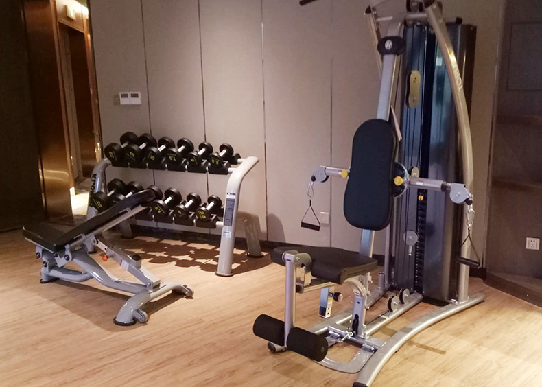 郑州金刚体育用品有限公司承接亘星酒店健身房工程,配备专业的健身器材,有JOHNSON乔山跑步机、乔山VISION椭圆机、乔山CLASS CYCLE动感单车、乔山多功能综合训练器、可调节哑铃椅、双层哑铃架、专业固定式哑铃等丰富的健身康体器械,满足大家的健身锻炼需求。
