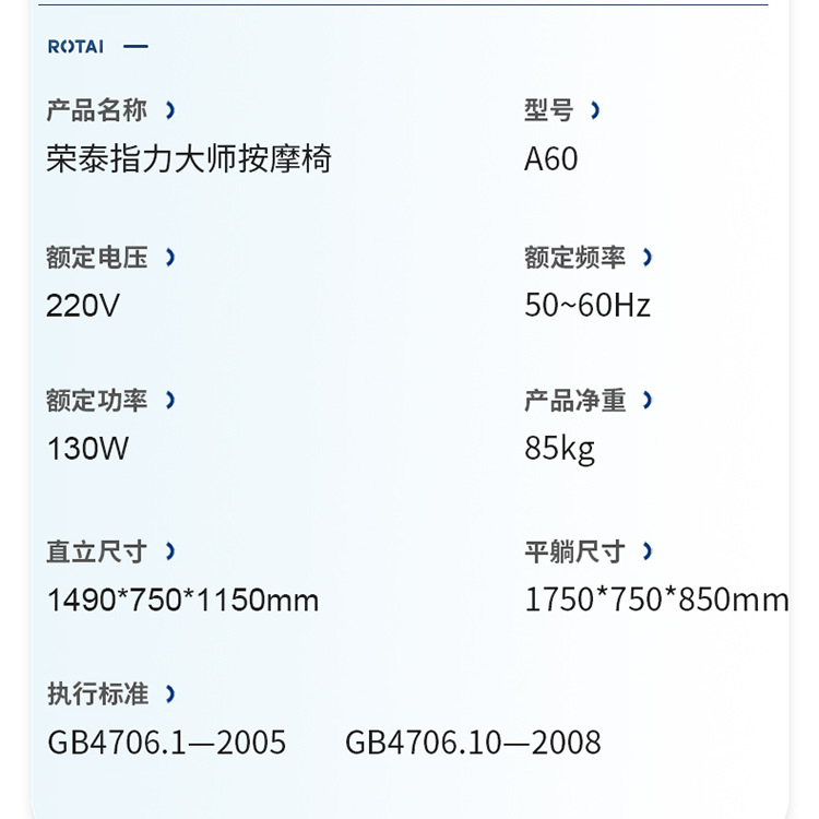 荣泰A60 新款按摩椅 家用全身小型豪华太空舱
